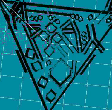 También ya que el objetivo de este juego es desorientar lo máximo posible. Decidí cambiar el diseño fundamental de cualquier laberinto con base cuadrada a uno con base triangular. Para añadir la dificultada de diagonales y no solo verticales y horizontales